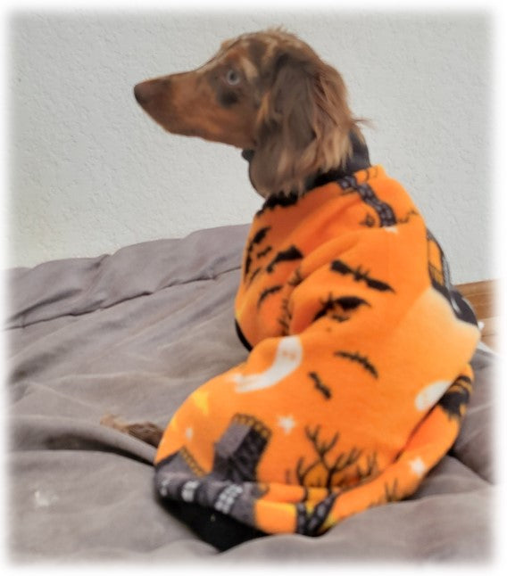 We make dog pajamas. Soft, warm, cozy fleece dog pajamas. Keep him as warm as you are. Yeah, I'm feeling the love.