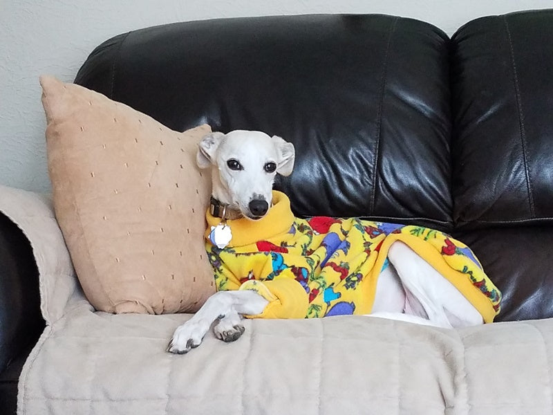 Scroll through the top menu bar to begin your journey of love. Choose from ready to ship PJs, or fine tune the fit and colors of your dog's PJ's with our custom options.